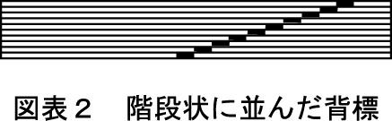 背標は、折り丁を丁合いした時に、乱丁や増・落丁の有無を目視確認するために折り丁の背に付けられる「スミベタの潰し」です。この背標は背丁とともに、手折りや折り機で刷り本を折る時の裏折りを防ぐ役割も果たしています。近年はほとんどの丁合い機に絵柄検知器が設備され、以前に比べれば、乱・増・落丁の発生をかなり抑えることができるようになりましたが、絵柄検知器は時おり誤作動を起こすため、100%頼ることはできず、目視による検査は欠かせません。特に背標は以下のような使われ方がされており、乱・増・落丁の防止のための重要な品質管理手段となっています。